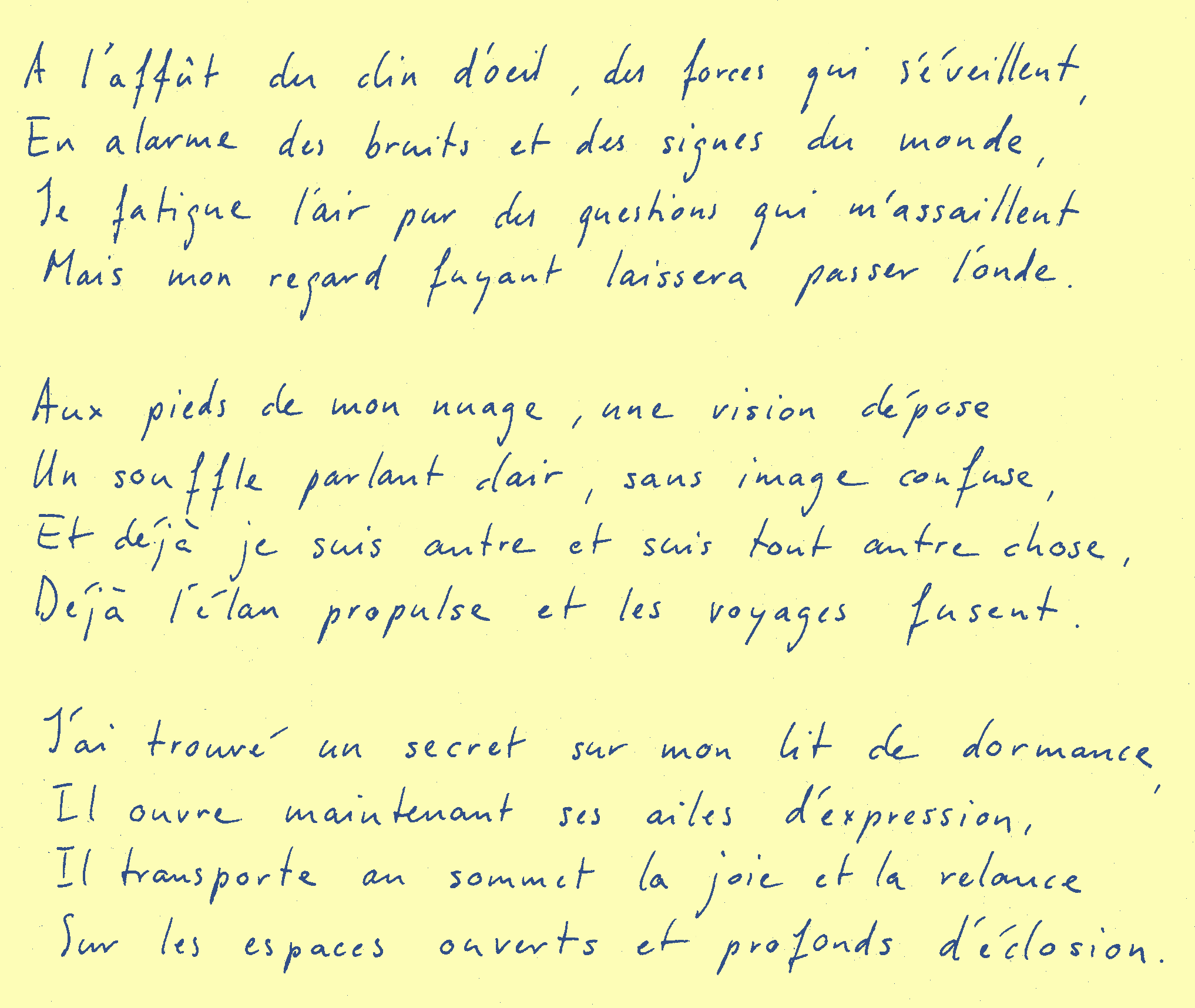 Je fatigue l’air pur des questions qui m’assaillent